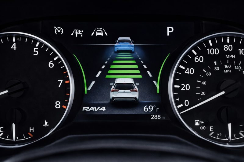 اطلاعات مربوط به رادار هیوندای راوفور RAV4 بهصورت گرافیکی و واضح در صفحه پشت آمپر نمایش داده میشود. این نمایش شامل فاصله با خودروی جلو، خطوط جاده و هشدارهاست.