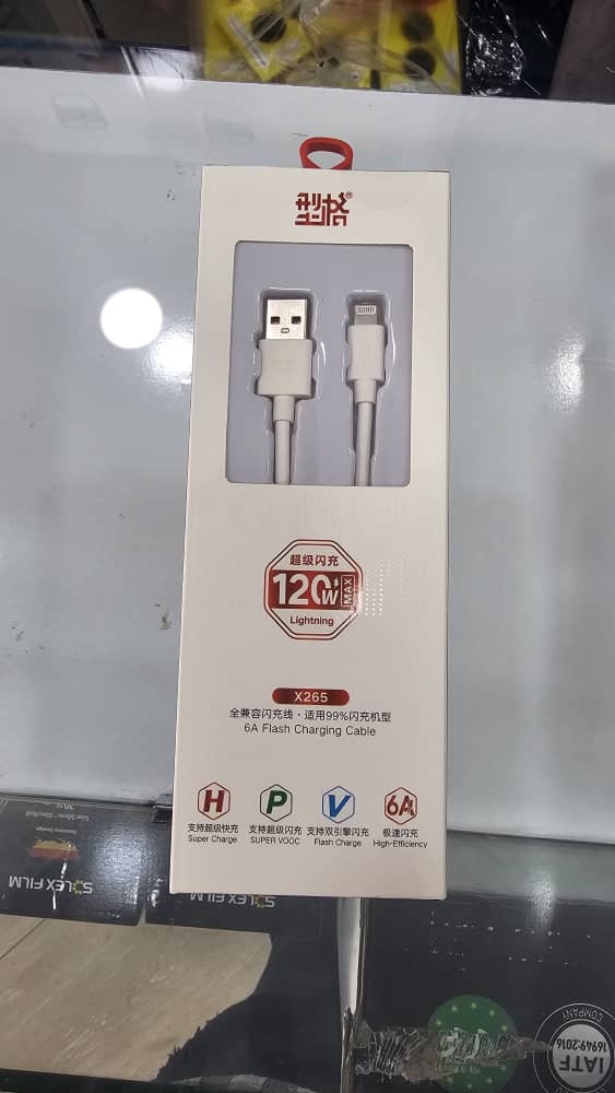 کابل شارژ X265 یک کابل قدرتمند و سریع برای دستگاههای اپل (iPhone، iPad و iPod) با درگاه Lightning است. این کابل با توان فوقالعاده 120 وات و جریان 6 آمپر طراحی شده و از فناوریهای Super Charge، SUPER VOOC و Flash Charge پشتیبانی میکند. همین ویژگی باعث میشود دستگاههای شما در کمترین زمان ممکن شارژ شوند و کارایی بالایی در مقایسه با کابلهای معمولی داشته باشد.
